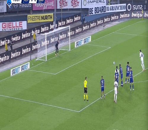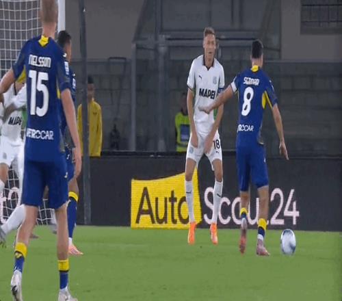 71’法德拉造点,皮纳蒙蒂主罚被扑补射命中,维罗纳0-1萨索洛
