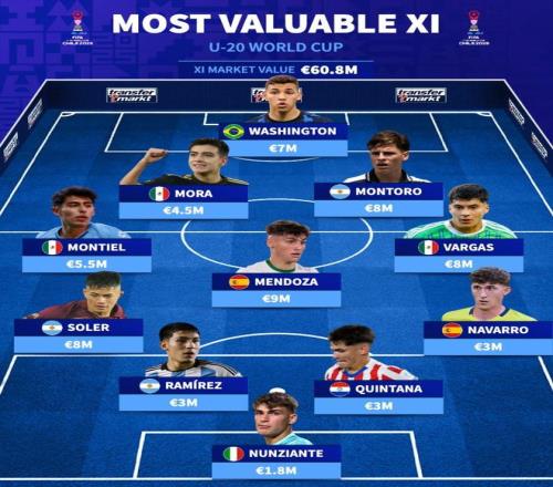 德转本届U20世界杯最贵11人阵容:
