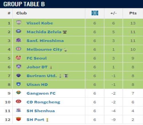 第6轮之后,上海海港以2分继续在东亚区垫底,也继续成为本赛季唯一一支未能取胜的亚冠球队。成都蓉城(6分)、上海申花(4分)分别排名第10位、第11位,分别落后排名第8位的蔚山现代2分、4分,仍然有希望晋级淘汰赛。