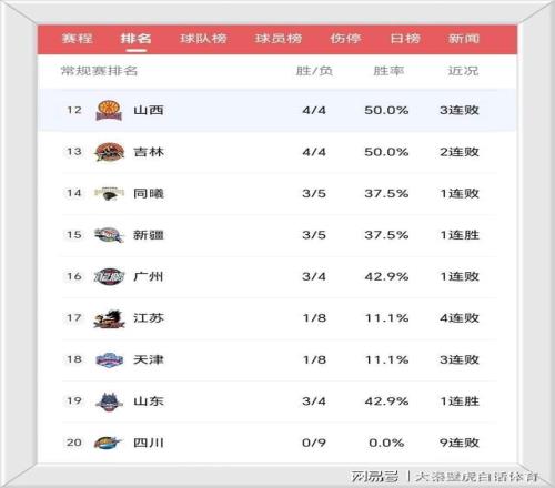 ④、全华班比赛的四川男篮又输了,9连败直接未尝一胜,继续处于垫底位置。