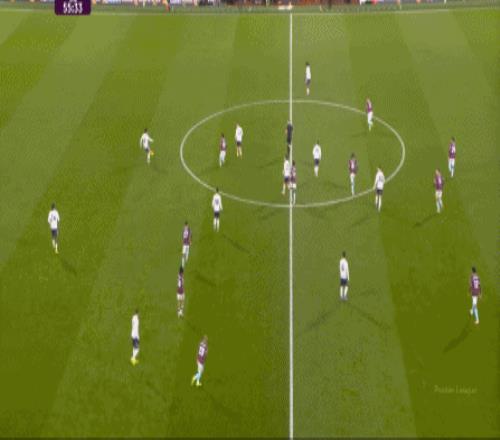 而且,攻转守的逻辑也重新发生了变化,比如这次谢什科没有接好球,立刻被伯恩利发展到边路,于是你可以看到,中场、右中卫和右后卫需要形成三人之间的轮转: