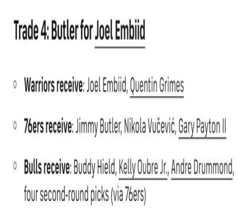 勇士得到:恩比德+格莱姆斯;