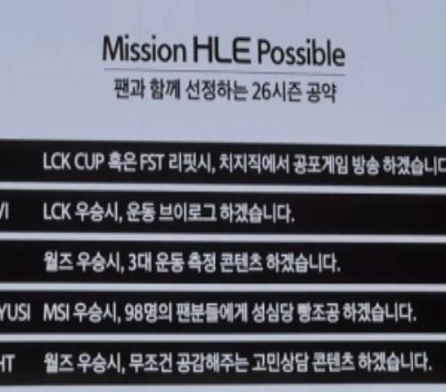 体育资讯1月3日称 HLE官方公布了2026年选手公约; Zeus:若在LCK杯或者是FST,联赛期间夺冠,将在chzzk进行恐怖游戏直播。 Kanavi:若LCK夺冠,将拍摄运