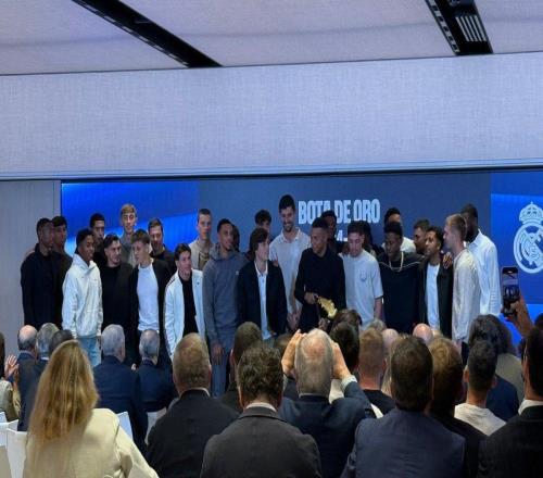 10月31日,姆巴佩在伯纳乌领取了2024-25赛季欧洲金靴奖,皇马全队出席仪式。2024-25赛季欧洲金靴奖颁奖仪式在伯纳乌球场进行,皇马前锋姆巴佩上赛季以31粒西甲进球荣获这一奖项。